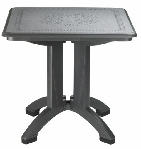 La sarl Bernard vous présente la table Victoria de Grosfillex Dimension: L 80 X l 80 X H 73.5 Coloris: Anthracite décor Tôle : 55117002 Anthracite...