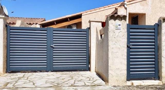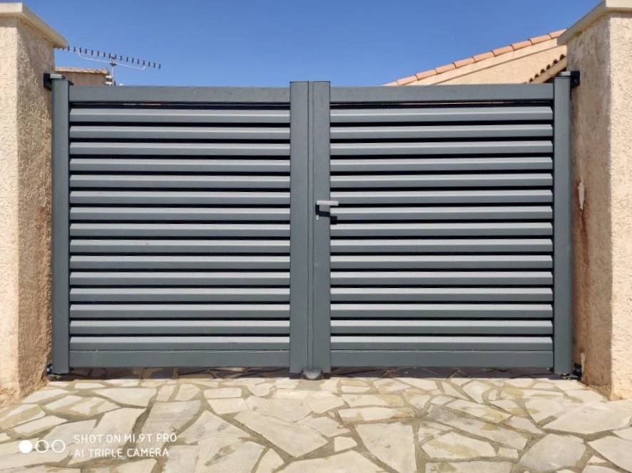 SARL BERNARD, votre spécialiste en fenêtre PVC et ALU, volets, porte de garage, portails, garde-corps, stores et moustiquaires situé à Vitrolles près de l’aéroport de Marignane, vous propose l’installation d’un portail gris KSM à Marignane :