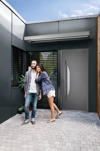 Porte d'entrée AZUR aluminium contemporaine petit vitrage