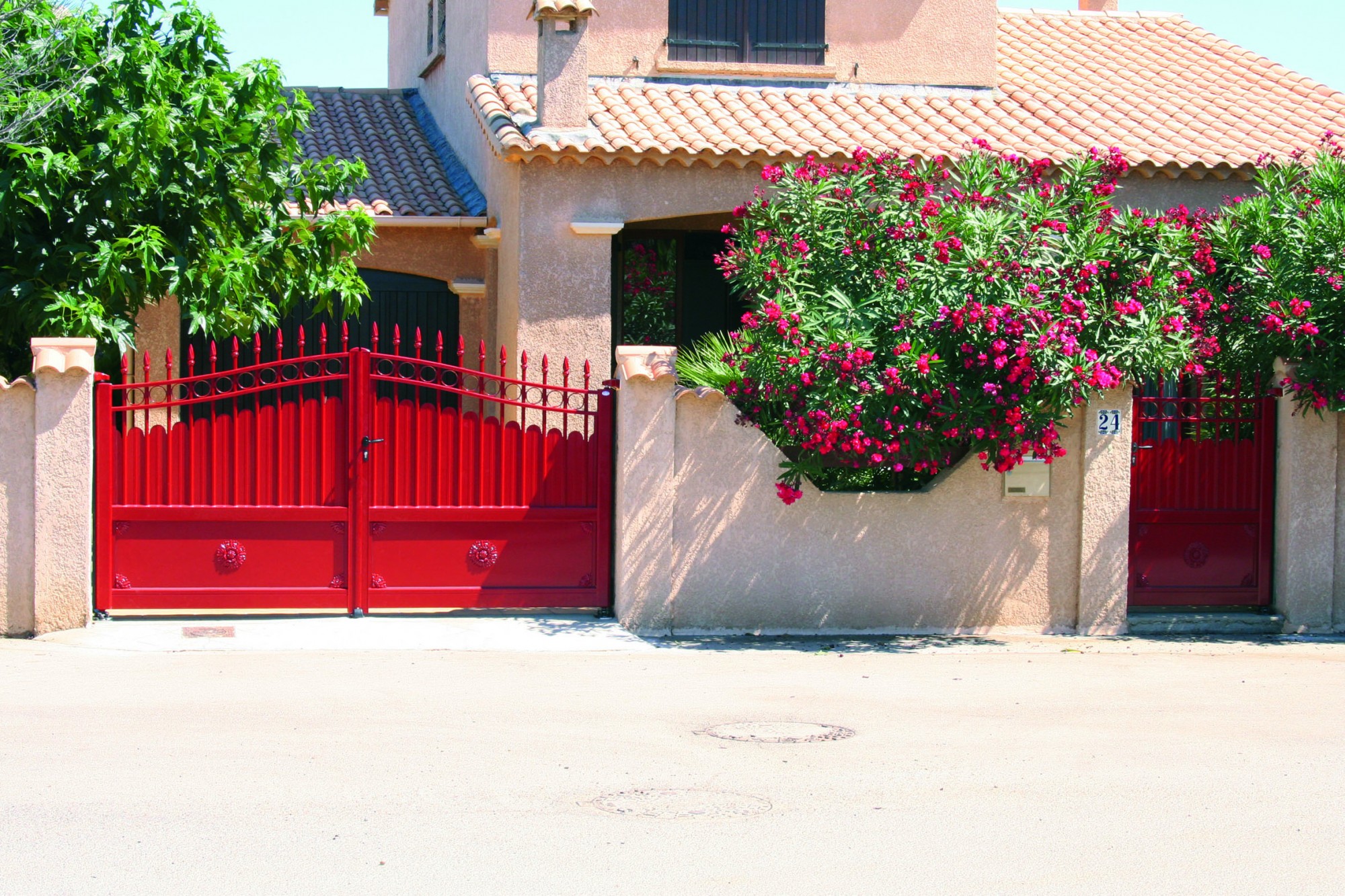 Tous les portails alu battant sont proposés avec arrêts d'ouverture intégrés en standard.